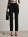 O modelo apresenta cintura média, bolsos funcionais, fechamento frontal com zíper e botão encapado, além de barra levemente italiana — um detalhe clássico que reforça seu acabamento de luxo.