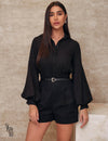 Características da Peça: Modelo: Camisa de botões. Mangas: Longas estilo balonê com punho, proporcionando um toque romântico e sofisticado. Gola: Social, que adiciona um ar de formalidade e elegância. Bojo: Não possui bojo, garantindo conforto e leveza. Forro: Não possui forro, ideal para um caimento fluido. Fechamento: Botões frontais, práticos e elegantes. Confeccionado em: Crepe, material que confere um toque macio e refinado.