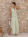 Conjunto Camisa e Calça Linho Detalhes Prega e Fenda Lateral Cinthia Off White