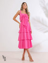 O Cropped Encantador: Com um decote reto e um laço frontal, o cropped adiciona um toque de elegância e feminilidade ao visual. Alças finas proporcionam delicadeza, enquanto o modelo soltinho garante conforto. O elástico nas costas assegura um ajuste perfeito, adaptando-se à sua silhueta. Sem bojo para liberdade de movimento. O crepe twill oferece um caimento suave e agradável, e a ausência de zíper ou botão torna a vestimenta prática. A Saia Midi em Camadas e Elegância: A saia midi, com suas camadas, traz movimento e sofisticação ao conjunto. A cintura elástica equilibra conforto e valorização da silhueta. O crepe twill de alta qualidade oferece uma sensação de luxo e suavidade, com um forro interno que aumenta o conforto.