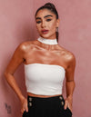 O modelo possui comprimento cropped. Decote Tomara que caia, a gola é estilo choker na parte das costas da peça, não possui bojo interno, não possui forro interno, elastano no tecido, peça confeccionada em malha canelada super estilosa e confortável. O modelinho não possui fechamento em zíper ou botão.