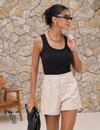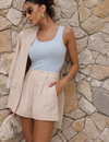 A regata básica de malha canelada é uma peça essencial no guarda-roupa feminino. Com ausência de mangas e gola redonda clássica, garante conforto e liberdade de movimentos, sendo ideal para os dias mais quentes ou para compor sobreposições elegantes. Seu design minimalista facilita combinações com calças, saias e shorts, permitindo criar desde looks casuais até produções mais sofisticadas.