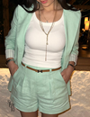 - Shorts, saias, calças jeans ou alfaiataria.