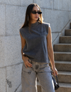 Com modelagem muscle tee e ombros estruturados com ombreiras embutidas, ela cria uma silhueta moderna e elegante.