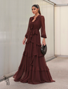 Secreto Vestido longo babado Com Faixa Cora Amêndoa