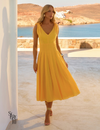 Vestido midi em voil com pregas na saia, confeccionado em tecido tricoline, ideal para um visual elegante e sofisticado