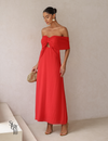 O modelo traz o decote ombro a ombro, que realça a feminilidade e adiciona um toque moderno e sedutor. O detalhe frontal torcido, em conjunto com o recorte sutil, cria um ponto de interesse diferenciado, tornando o vestido único e memorável. O caimento fluido garante leveza nos movimentos, sem abrir mão da sofisticação.