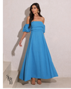 Vestido longuete com mangas bufantes removíveis. Versátil e elegante, ideal para compor looks sofisticados com diferentes estilos.