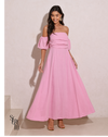 O vestido longuete tomara que caia (TQC) é uma peça versátil e sofisticada, perfeita para diversas ocasiões. Seu decote TQC valoriza o colo com elegância, enquanto o drapeado no busto acrescenta charme e feminilidade ao visual.